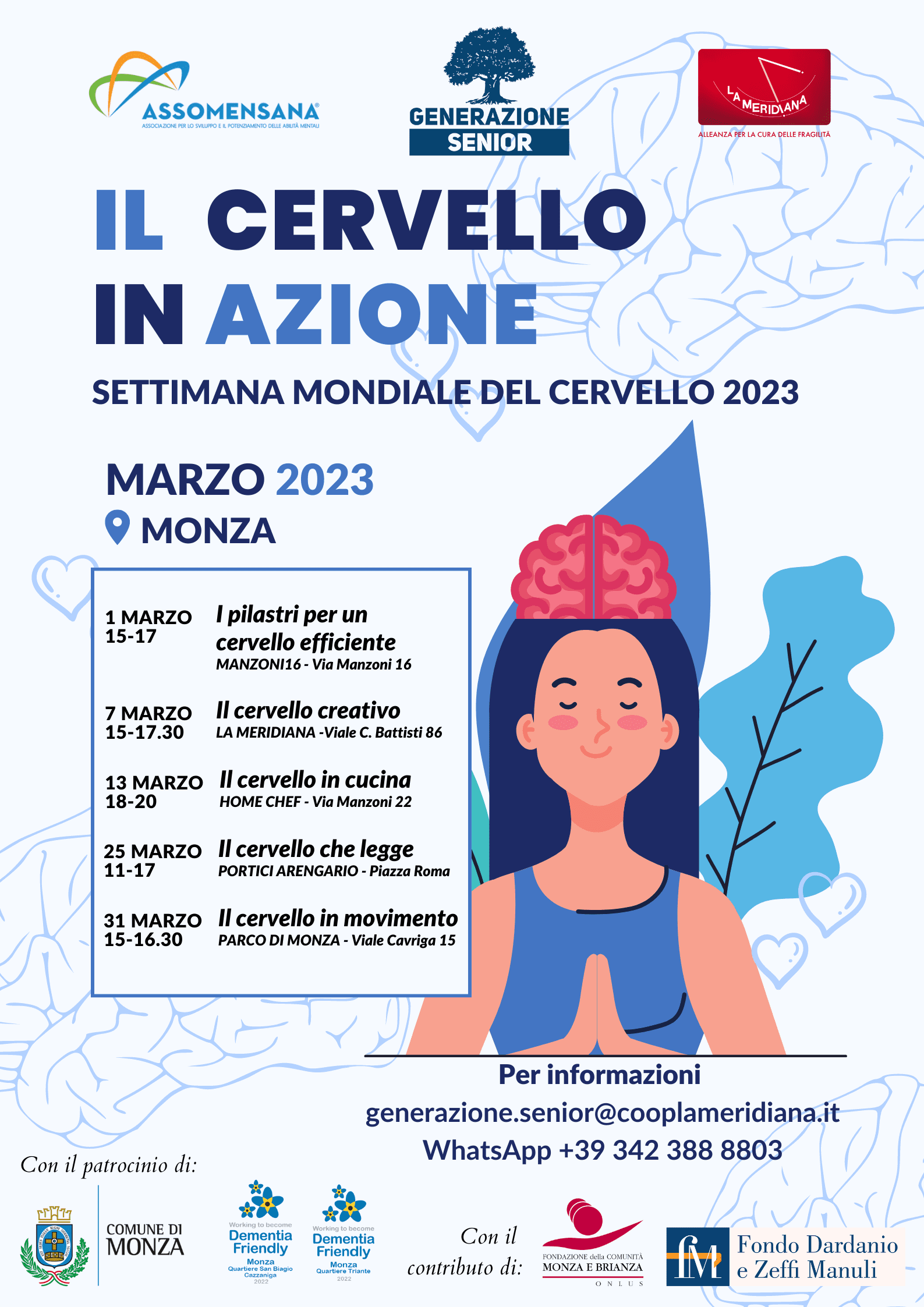 Per la promozione del benessere del cervello e per la prevenzione del declino cognitivo. Ciclo di incontri, performance creative, svago, letture, cucina, attività motorie, il tutto per scoprire come funziona e come ci stupisce il nostro cervello.