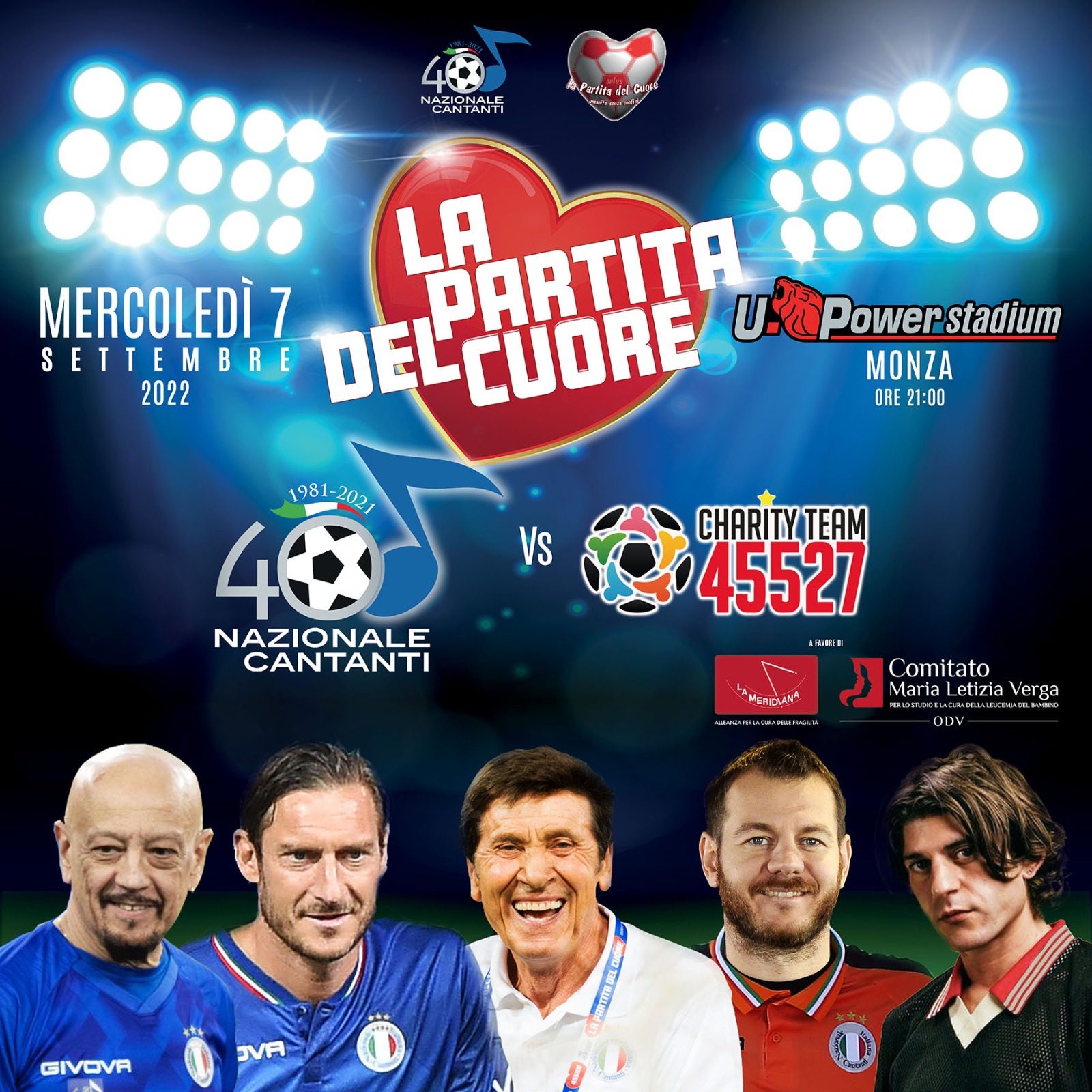 Monza, 02 agosto 2022. Procede spedito il countdown verso la Partita del Cuore, tra la Nazionale Cantanti e il Charity Team 45527, in programma all’U-PowerStadium (Brianteo), il 7 settembre, alle ore 21.15.